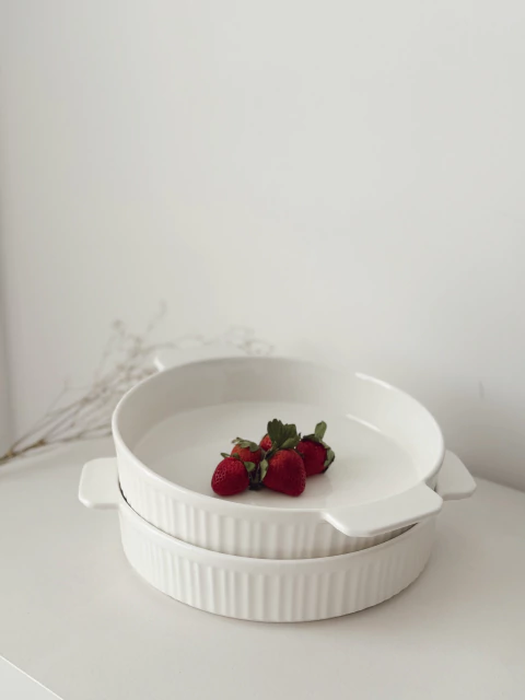 Fuente para horno con asas redonda 30,5x25x5,5 cm: combina funcionalidad y estilo en tu cocina. Fabricada en cerámica con detalles a rayas, esta fuente es ideal para cocinar y servir con elegancia. Su capacidad de 1600 ml y resistencia a horno, microondas y lavavajillas la convierten en un aliado versátil y práctico. ¡Eleva tu experiencia culinaria con esta pieza imprescindible!